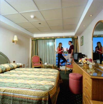 There are luxury features on this classic ship, such as: satellite TV, video system with feature movies, 3 classic bars, 1 piano bar, laundry service, international telephone, sundeck include Swimming pool, Jacuzzi, hair dresser, private bath in each cabin in addition to a digital safe deposit box in each cabin, gift shop, full service restaurant, Gift Shop and Full Medical Service